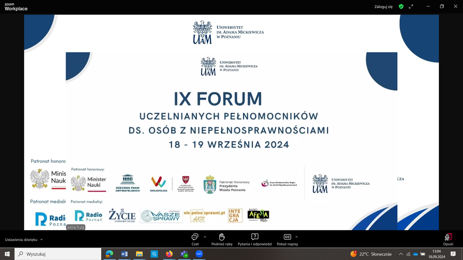 W dniach 18-19.09.2024 na Uniwersytecie Poznańskim odbyło się IX Forum Uczelnianych Pełnomocników ds.Osób z Niepełnosprawnościami.