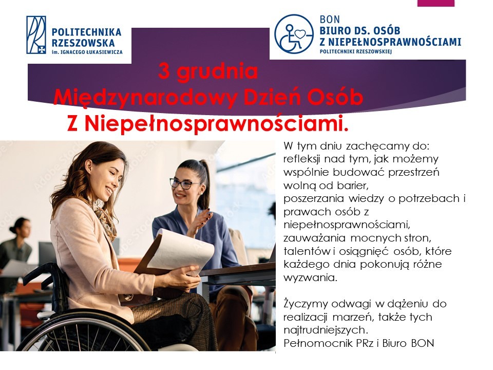 3 grudnia obchodzimy Międzynarodowy Dzień Osób z Niepełnosprawnościami-święto ustanowione przez Zgromadzenie Ogólne Organizacji Narodów Zjednoczonych w 1992 r.