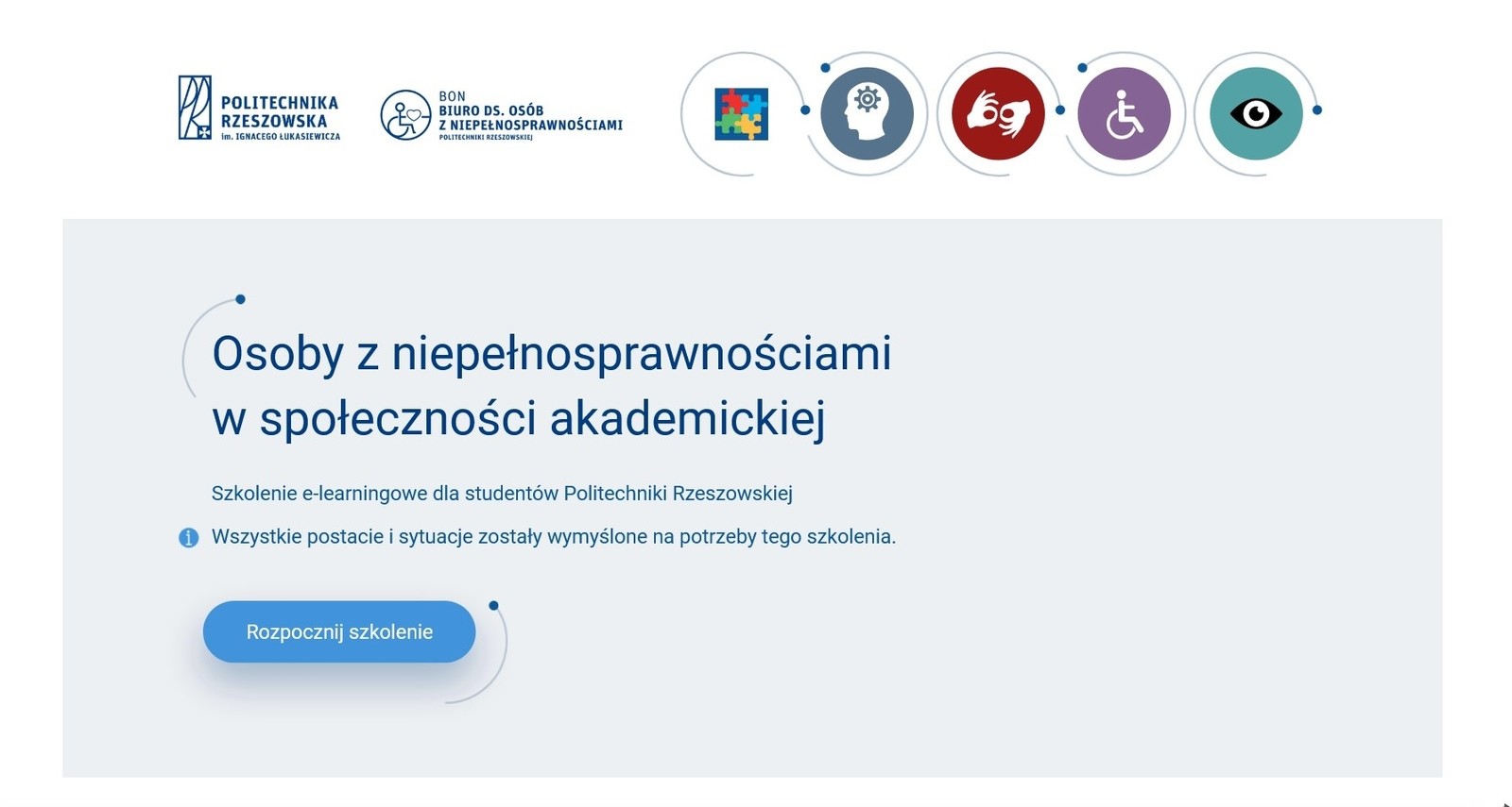 W związku z rozpoczynającym się rokiem akademickim 2023/2024,zapraszamy studentów pierwszych roczników do udziału w e-learningowym szkoleniu pt." Osoby z niepełnosprawnościami w środowisku akademickim".