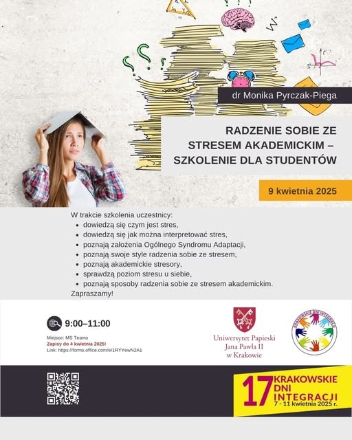 W ramach 17 Krakowskich Dni Integracji serdecznie zapraszamy studentki/studentów na warsztaty w dniu 9 kwietnia 2025 roku